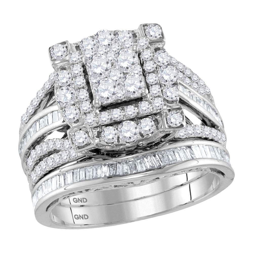 14kt Two-tone Gold Womens Round Diamond Bridal Wedding Engagement Ring Band Set 1-7/8 Cttw