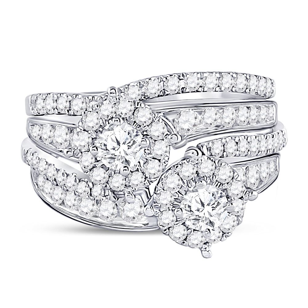 14kt White Gold Womens Round Diamond Bridal Wedding Engagement Ring Band Set 1-3/4 Cttw (Certified)