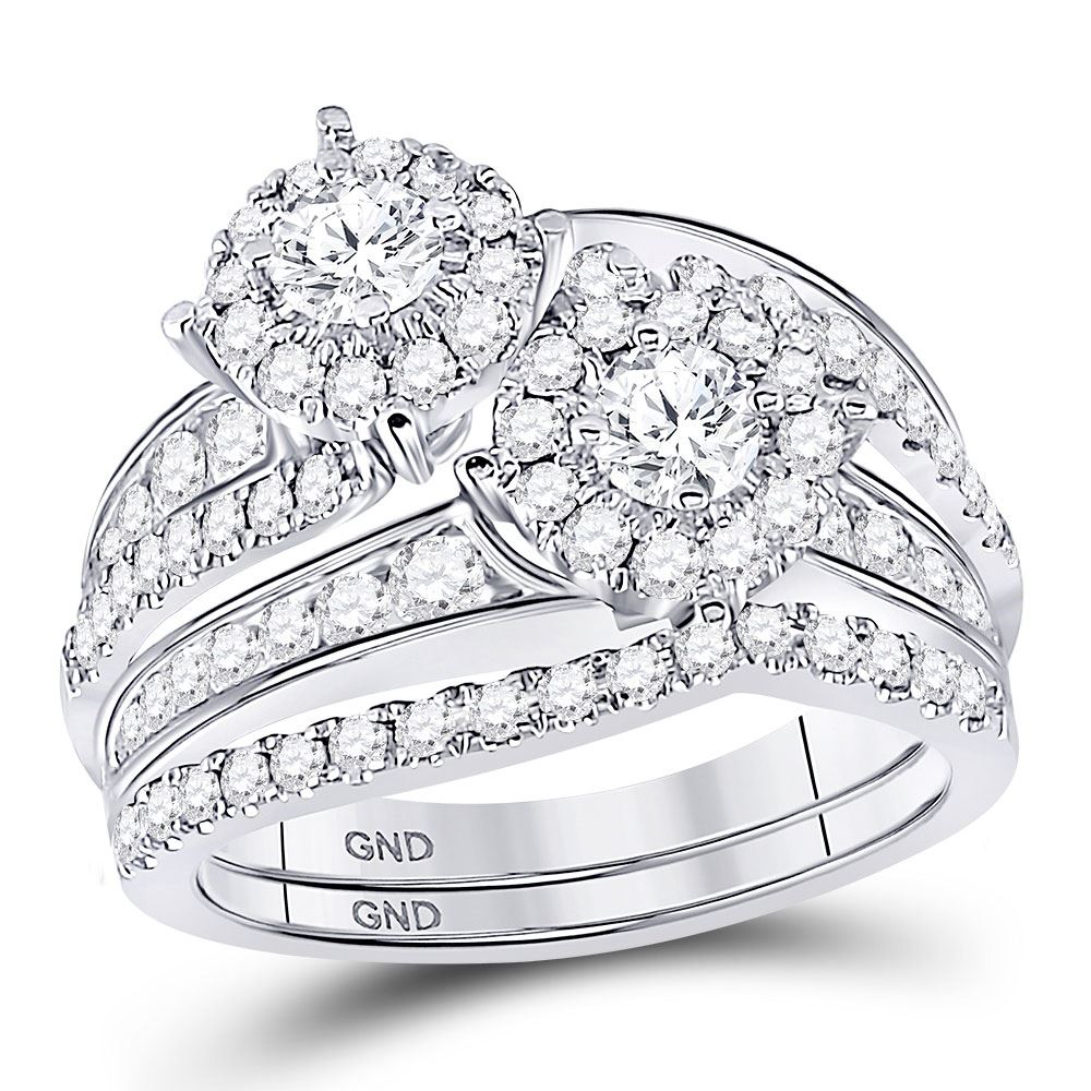 14kt White Gold Womens Round Diamond Bridal Wedding Engagement Ring Band Set 1-3/4 Cttw (Certified)