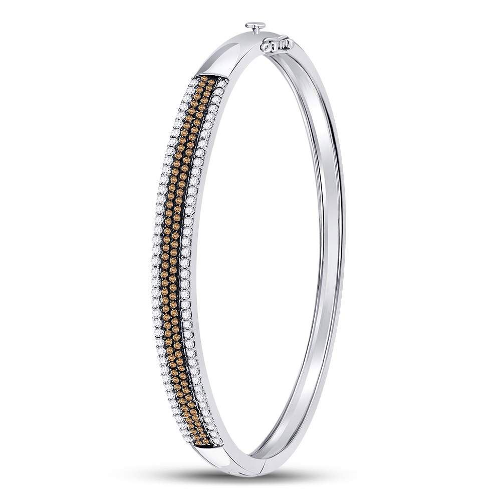 14kt White Gold Womens Round Brown Diamond Bangle Bracelet 1-3/8 Cttw