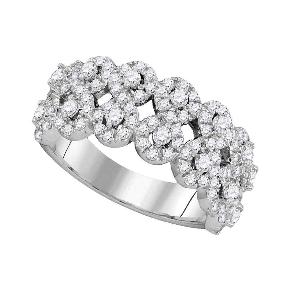 14kt White Gold Womens Round Diamond Double Row Circle Cluster Band 1-3/8 Cttw