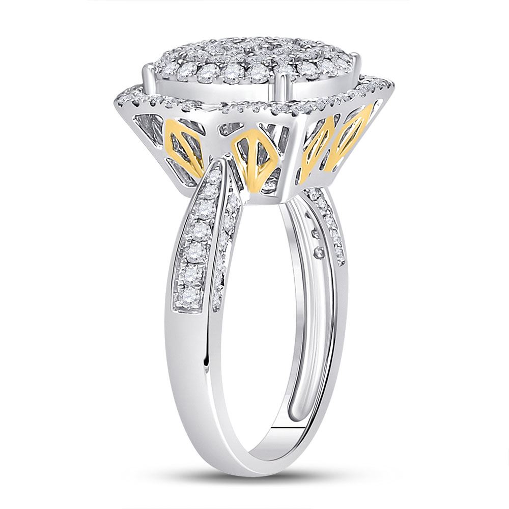 14kt Two-tone Gold Womens Round Diamond Right Hand Cluster Ring 1-3/8 Cttw