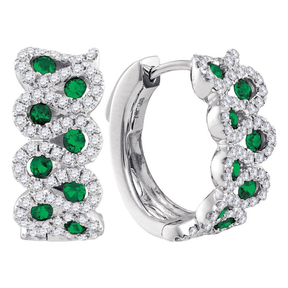 14kt White Gold Womens Round Emerald Diamond Hoop Earrings 1-3/8 Cttw