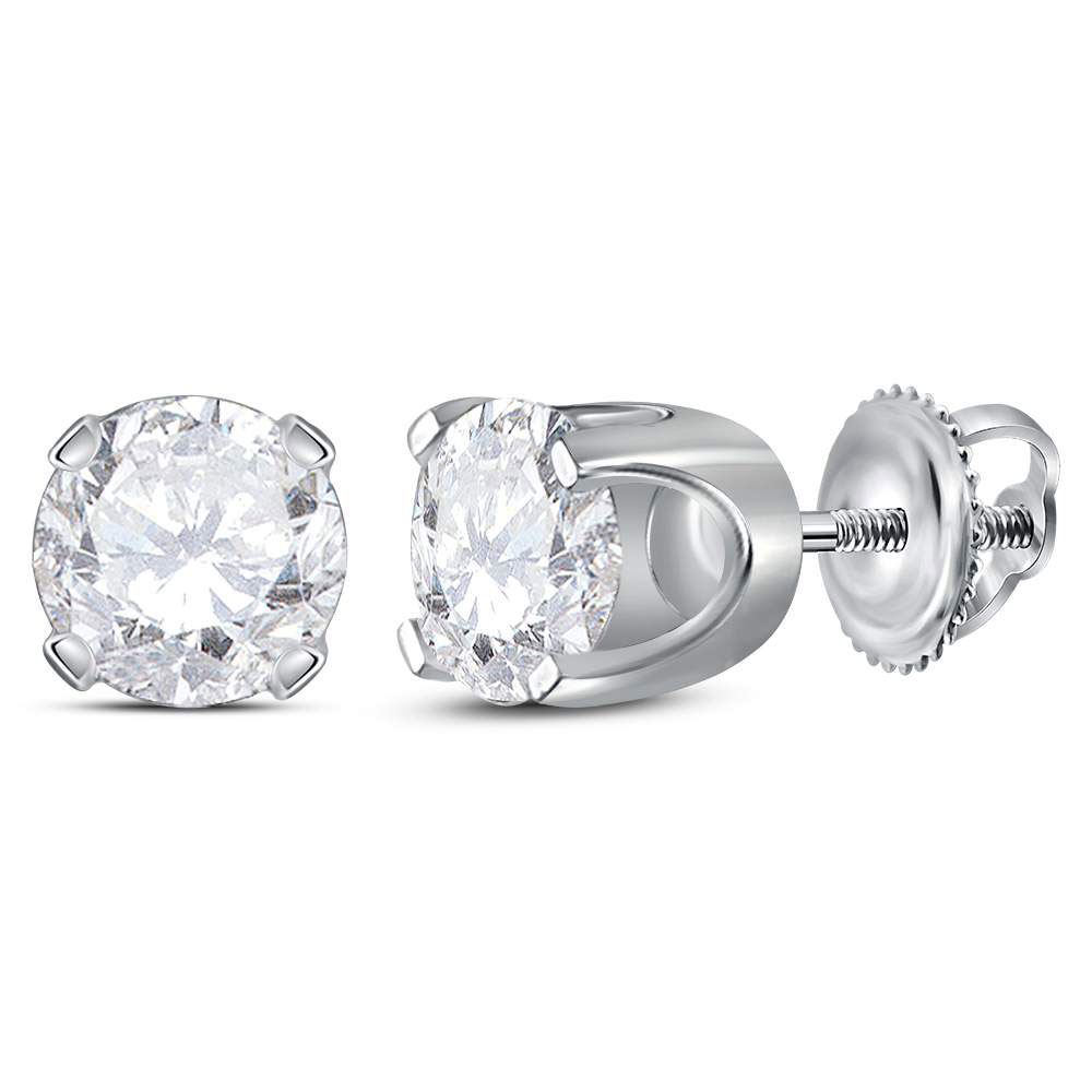 14kt White Gold Unisex Round Diamond Solitaire Stud Earrings 1-3/8 Cttw