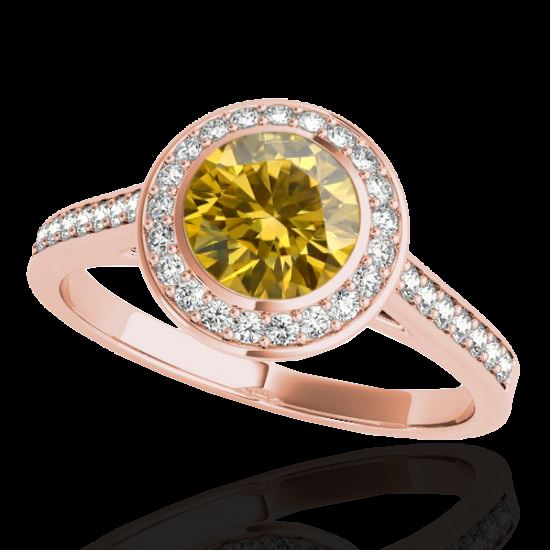 REF-168H4A -33633 ---- 1.3 CTW Certified Si/I Fancy Intense Yellow Diamond Solitaire Halo Ring 10K Rose Gold ---- Luxury Designer Brand Ring Appraised at $11,100 Certificate Number US33633 10k Rose gold, Ring Size is 7, Ring measuring approx. Uniform, weighing in total approx. 4.5 grams. Made in the USA and is stamped 10k, Main stone 1 carat total weight containing 1 pieces of Intense Fancy Yellow color with SI quality Round shape cut Diamond , Stone #2 0.3 carat total weight containing 42 pieces of H-I color with VS/SI quality Round shape cut Diamond