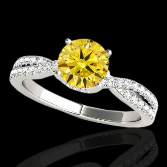 REF-174M5H -35280 ---- 1.3 CTW Certified Si/I Fancy Intense Yellow Diamond Solitaire Ring 10K White Gold ---- Luxury Designer Brand Ring Appraised at $11,500 Certificate Number US35280 10k White gold, Ring Size is 7, Ring measuring approx. Uniform, weighing in total approx. 4.7 grams. Made in the USA and is stamped 10k, Main stone 1 carat total weight containing 1 pieces of Intense Fancy Yellow color with SI quality Round shape cut Diamond , Stone #2 0.3 carat total weight containing 46 pieces of H-I color with VS/SI quality Round shape cut Diamond