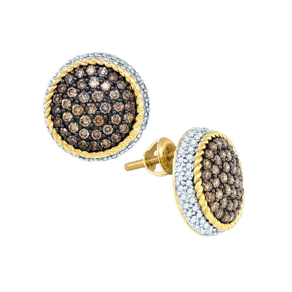 REF-67N4F- SKU: GD81611 ---- 1.3 CTW Cognac-brown Color Diamond Roped Cluster Earrings 10KT Yellow Gold