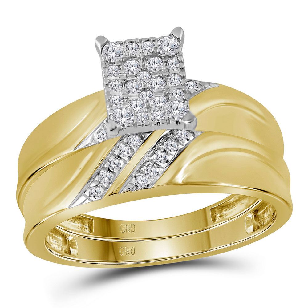 10k Yellow Gold Diamond Cluster Matching Trio His & Hers Wedding Ring Band Set 1/3 Cttw