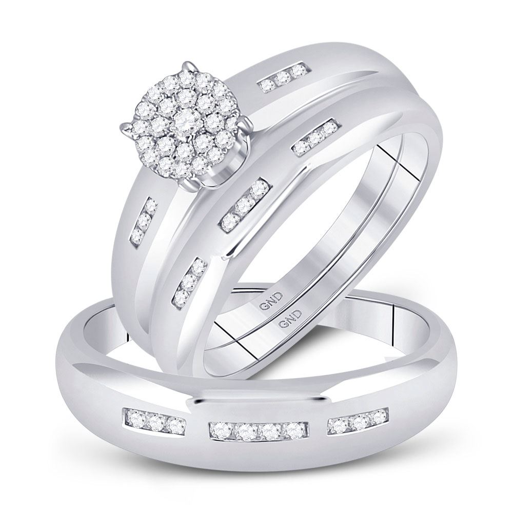 10kt White Gold His Hers Round Diamond Cluster Matching Bridal Wedding Ring Band Set 1/3 Cttw