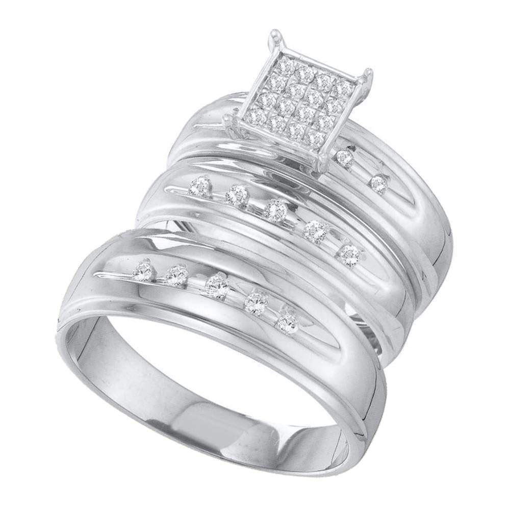 10kt White Gold His & Hers Round Diamond Cluster Matching Bridal Wedding Ring Band Set 1/3 Cttw
