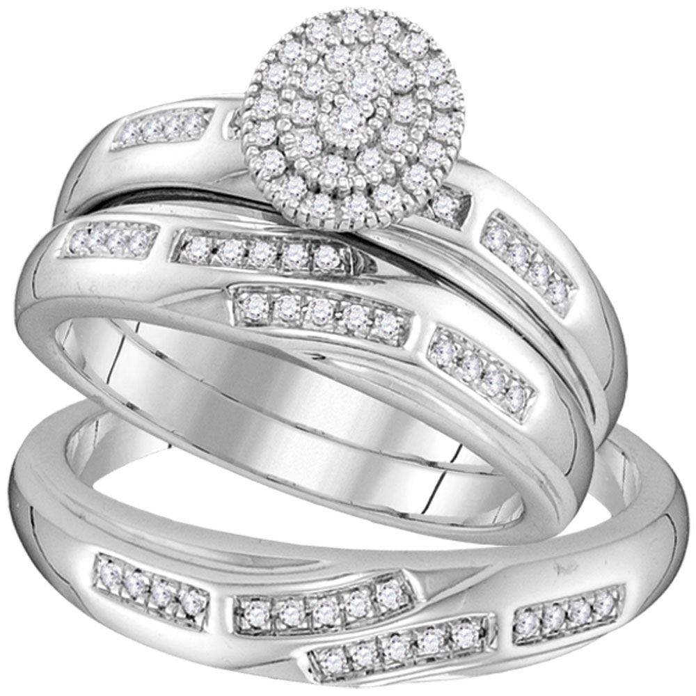 REF-44H2R - 1/3 CTW His Hers Round Diamond Cluster Matching Wedding Set 10kt White Gold - REF-44H2R