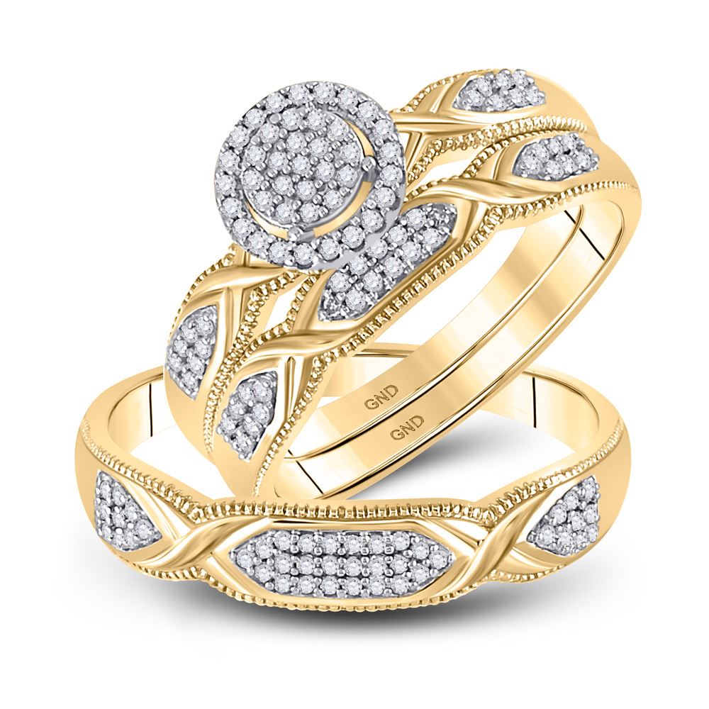 REF-45W2H - 1/3 CTW His Hers Round Diamond Cluster Matching Wedding Set 10kt Yellow Gold - REF-45W2H