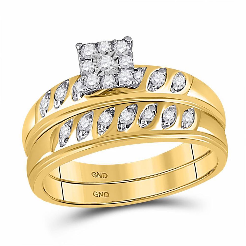10kt Yellow Gold His & Hers Round Diamond Solitaire Matching Bridal Wedding Ring Band Set 1/3 Cttw