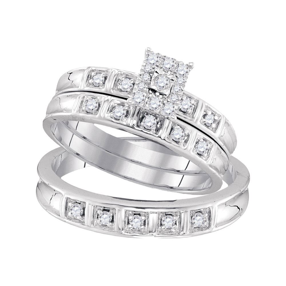 REF-39M5F - 1/3 CTW His Hers Round Diamond Solitaire Matching Wedding Set 10kt White Gold - REF-39M5F