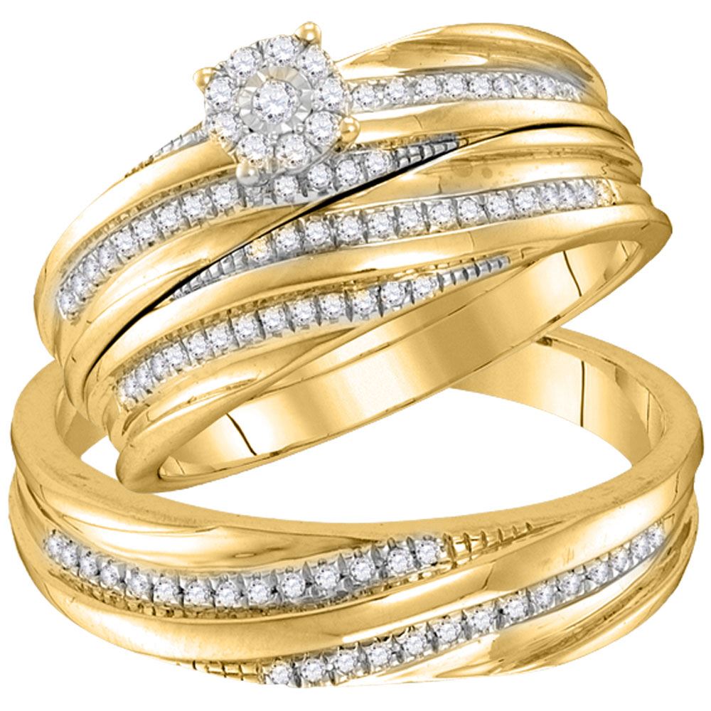 REF-44V4Y - 1/3 CTW His Hers Round Diamond Solitaire Matching Wedding Set 10kt Yellow Gold - REF-44V4Y