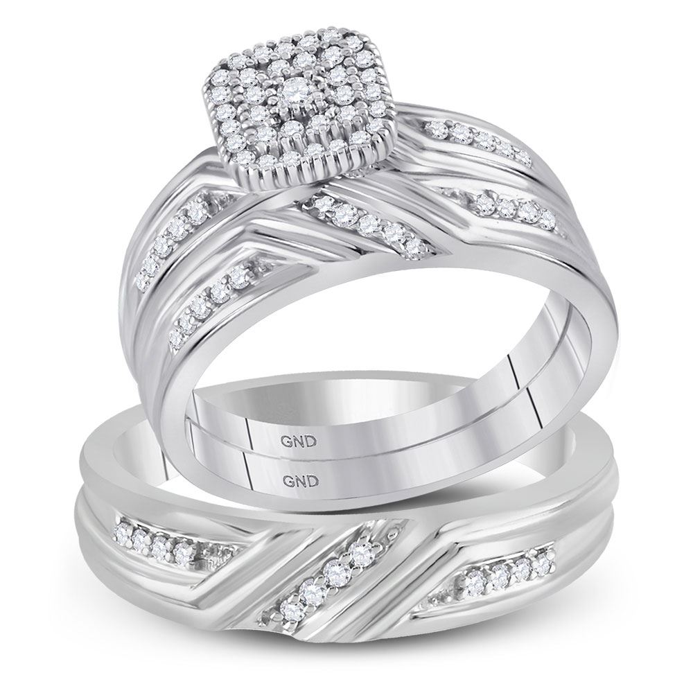 REF-54A5M - 1/3 CTW His Hers Round Diamond Square Matching Wedding Set 10kt White Gold - REF-54A5M