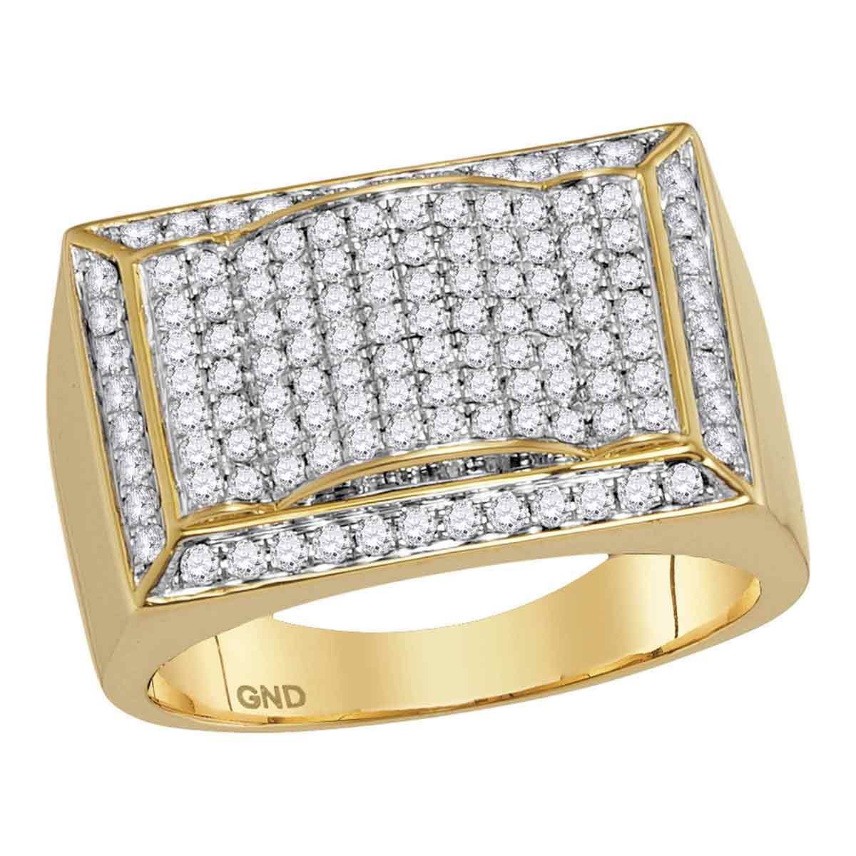 REF-127X4Y- SKU: GD114848 ---- 1.3 CTW Mens Diamond Rectangle Domed Cluster Ring 10KT Yellow Gold