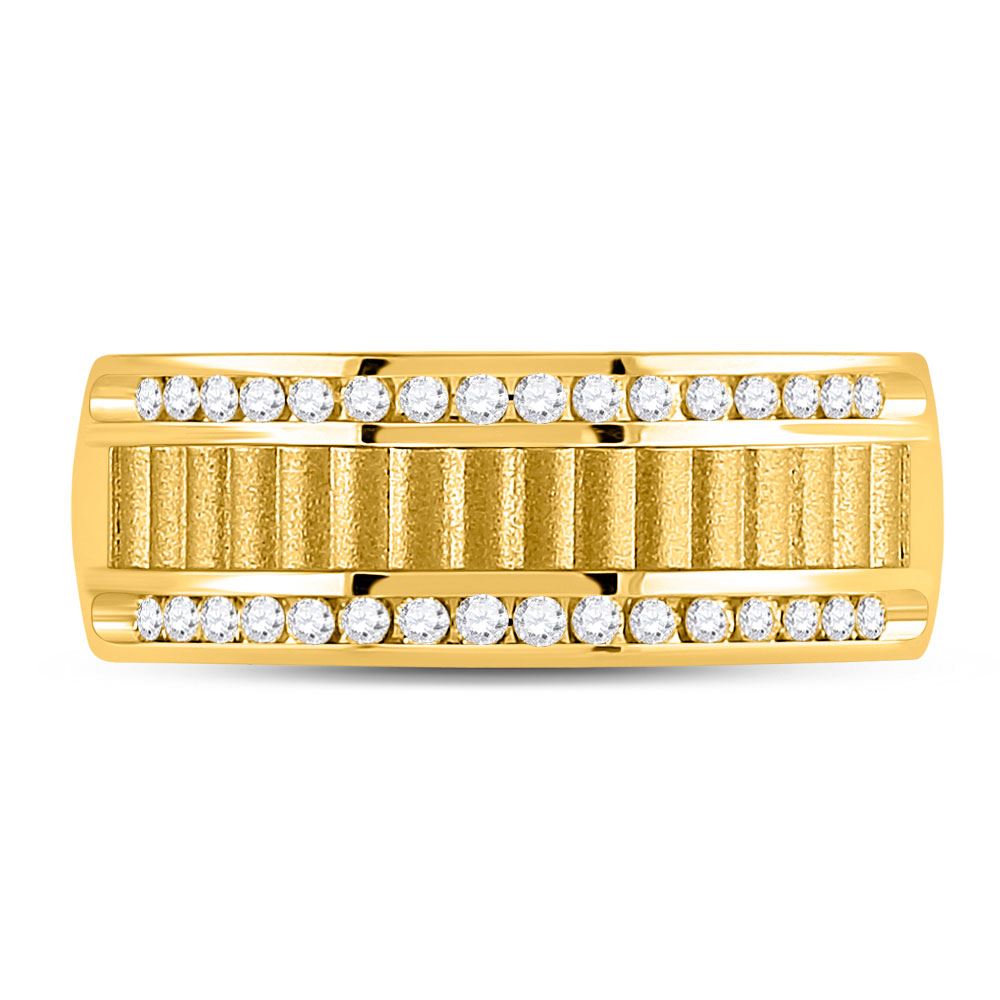 14kt Yellow Gold Mens Round Diamond Double Row Matte Textured Wedding Band Ring 1/3 Cttw