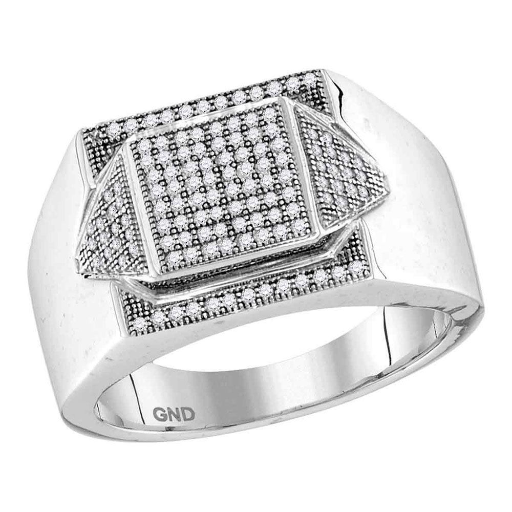 REF-42F8W - 1/3 CTW Mens Round Diamond Elevated Square Cluster Ring 10kt White Gold - REF-42F8W