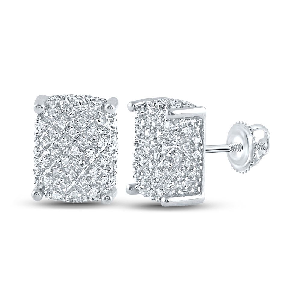 REF-24R5X - 1/3 CTW Mens Round Diamond Rectangle Cluster Earrings 10kt White Gold - REF-24R5X