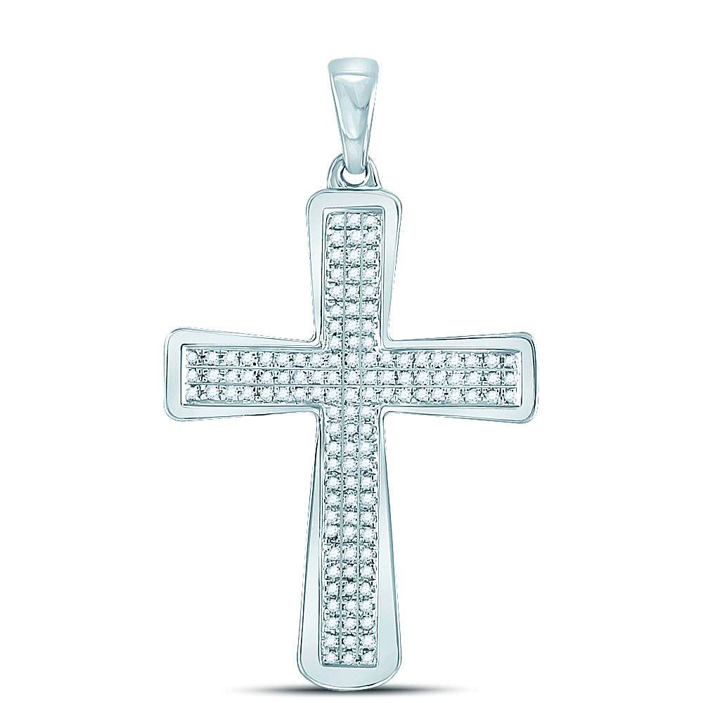 REF-26K3R ---- 1/3 CTW Mens Round Diamond Roman Cross Charm Pendant 10kt White Gold