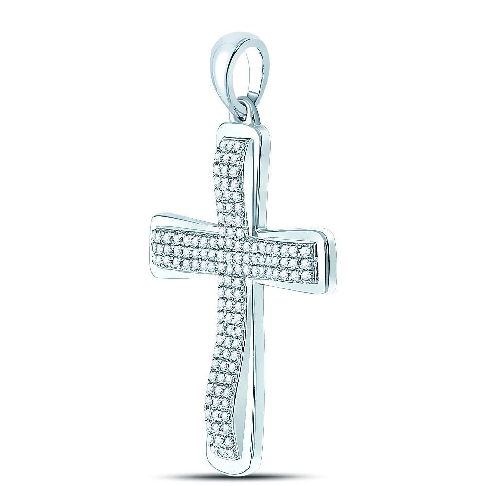10kt White Gold Mens Round Diamond Roman Cross Charm Pendant 1/3 Cttw