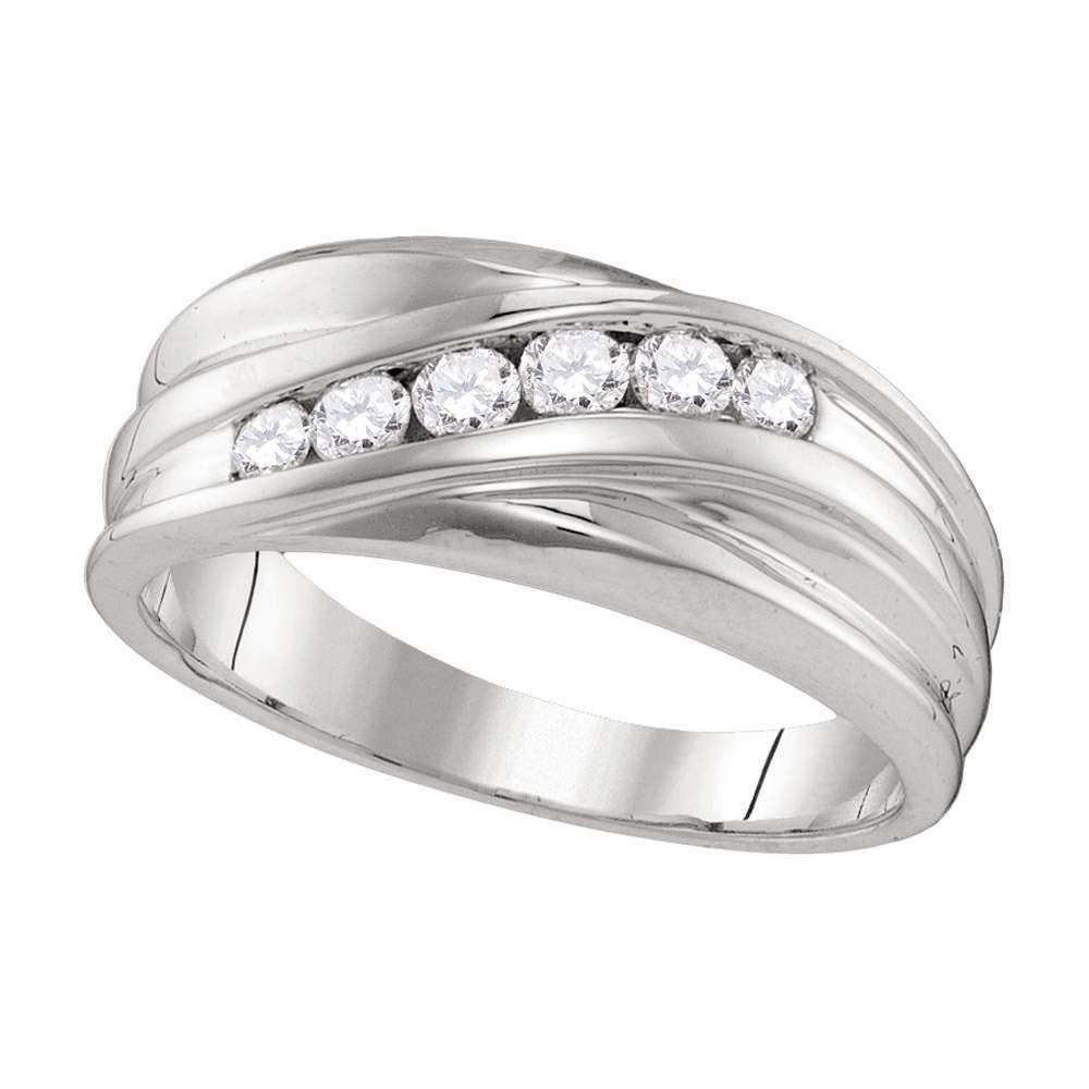 REF-39R5H ---- 1/3 CTW Mens Round Diamond Wedding Ring 10kt White Gold