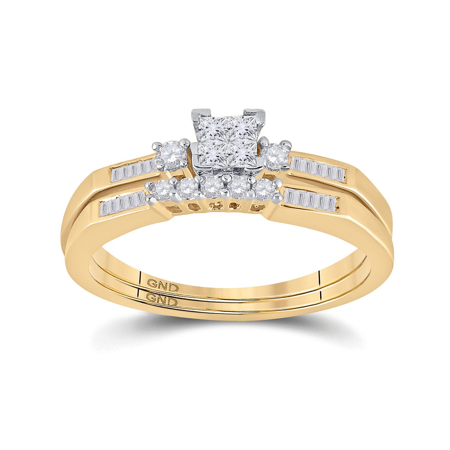 10k Yellow Gold Womens Princess Diamond Slender Wedding Bridal Engagement Ring Band Set 1/3 Cttw