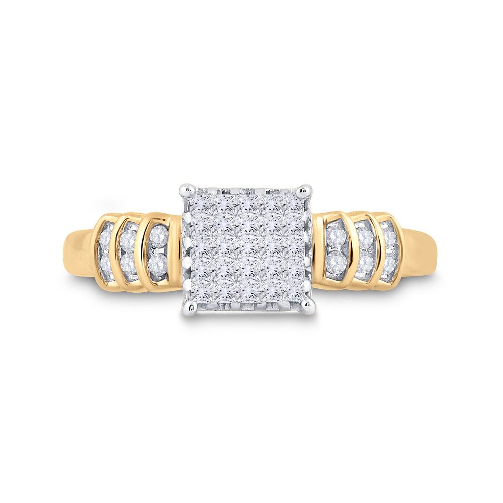 14kt Yellow Gold Womens Princess Diamond Cluster Bridal Wedding Engagement Ring 1/3 Cttw