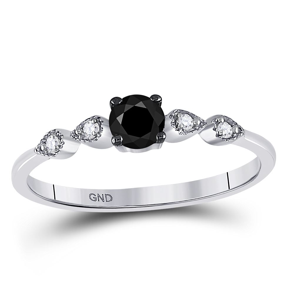10kt White Gold Womens Round Black Color Enhanced Diamond Solitaire Bridal Wedding Engagement Ring 1/3 Cttw