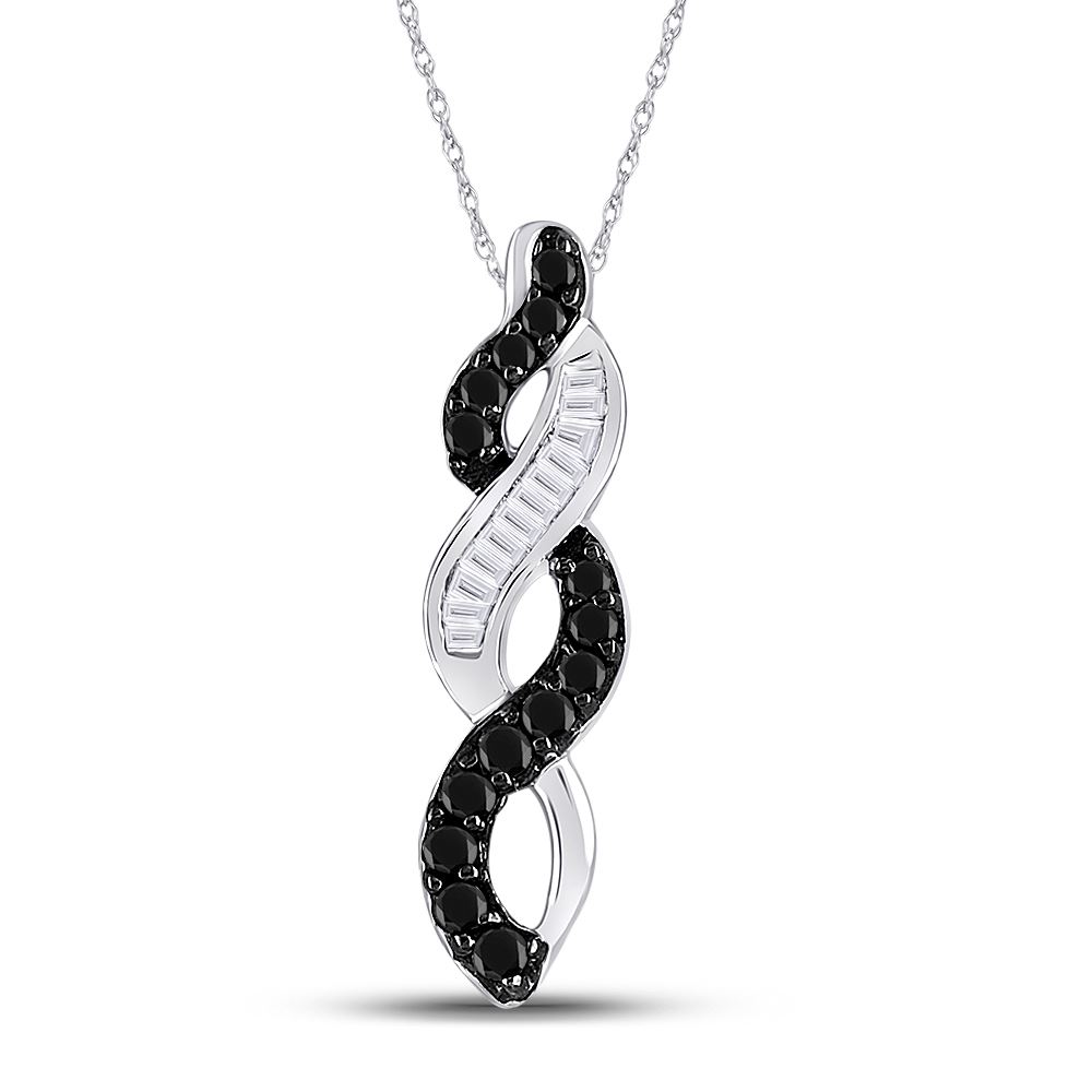 14kt White Gold Womens Round Black Color Enhanced Diamond Woven Infinity Pendant 1/3 Cttw