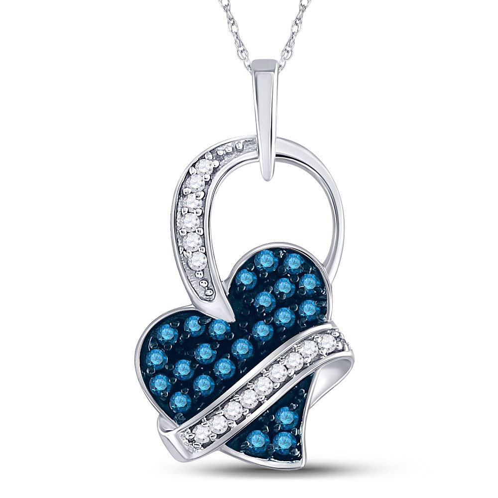 10kt White Gold Womens Round Blue Color Enhanced Diamond Captured Heart Pendant 1/3 Cttw