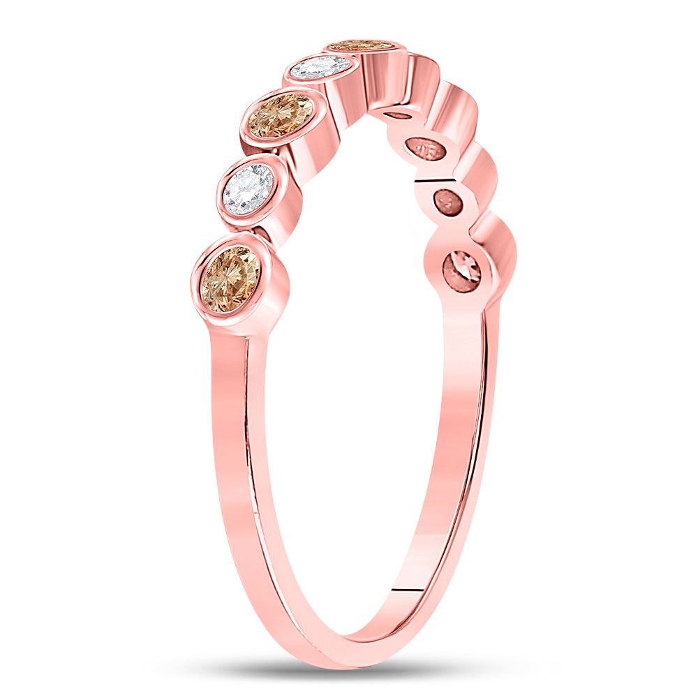 10kt Rose Gold Womens Round Brown Diamond Band Ring 1/3 Cttw