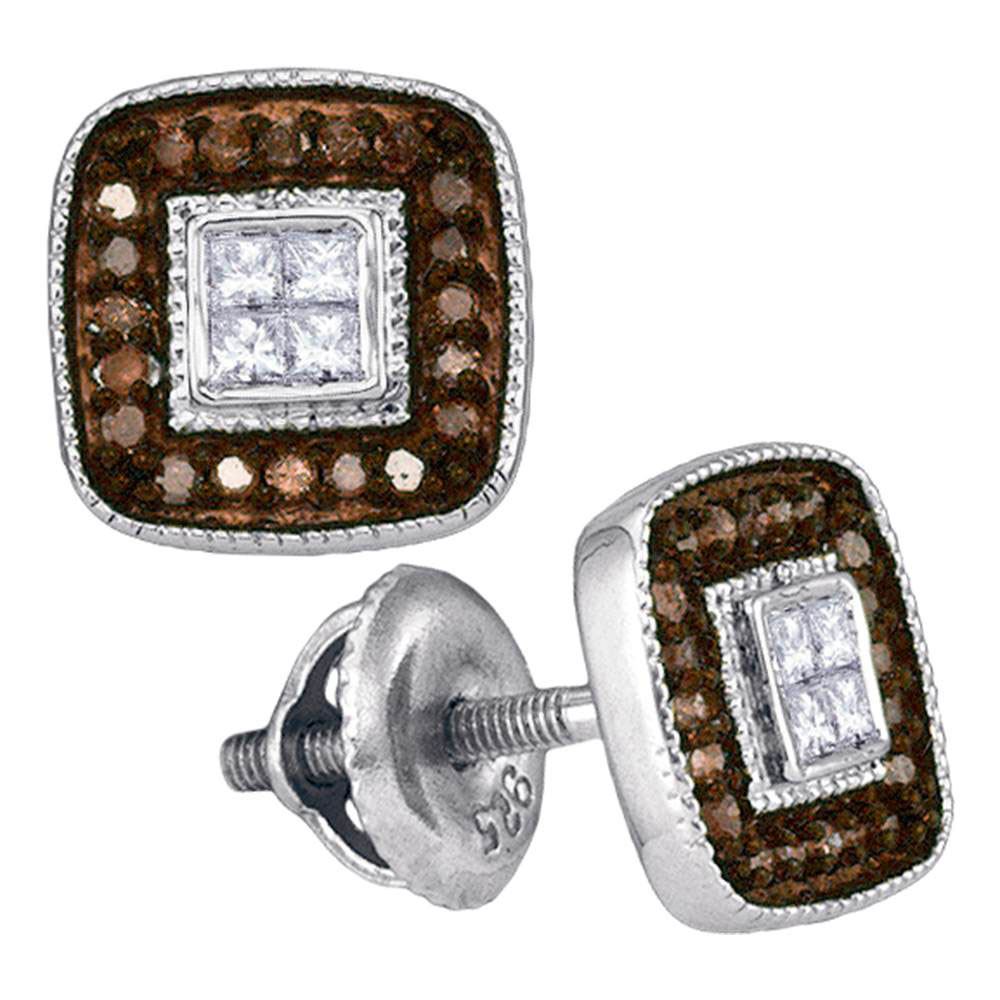 10kt White Gold Womens Round Brown Diamond Square Cluster Earrings 1/3 Cttw