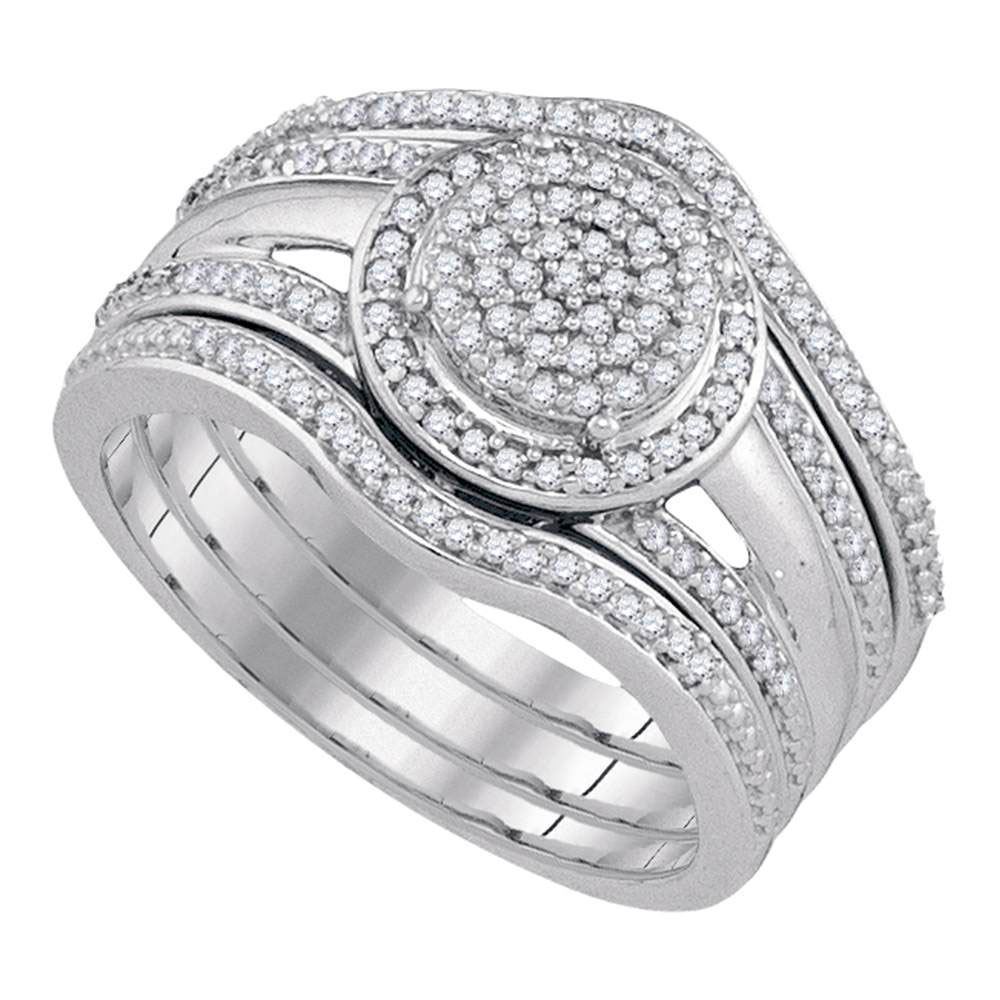 REF-54T5V - 1/3 CTW Round Diamond Bridal Wedding Ring Band Set 10kt White Gold - REF-54T5V
