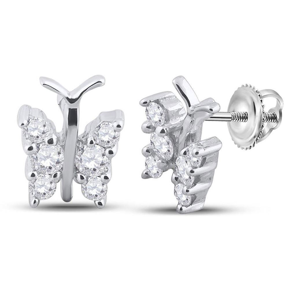 14kt White Gold Womens Round Diamond Butterfly Bug Screwback Stud Earrings 1/3 Cttw