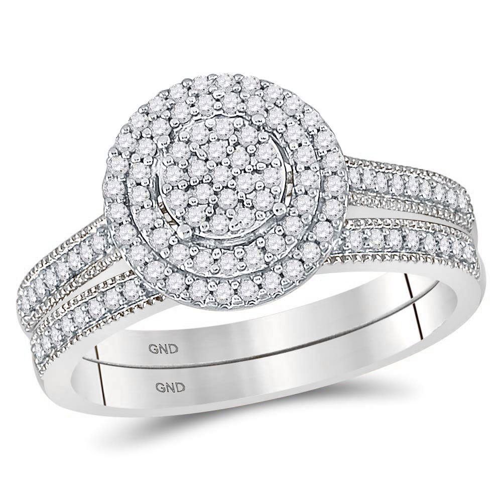 10kt White Gold Womens Round Diamond Cluster Milgrain Bridal Wedding Engagement Ring Band Set 1/3 Cttw