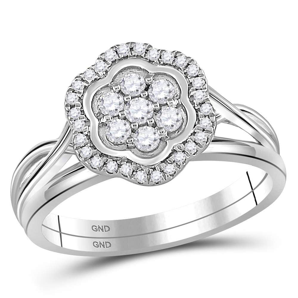 10kt White Gold Womens Round Diamond Flower Cluster Bridal Wedding Engagement Ring Band Set 1/3 Cttw