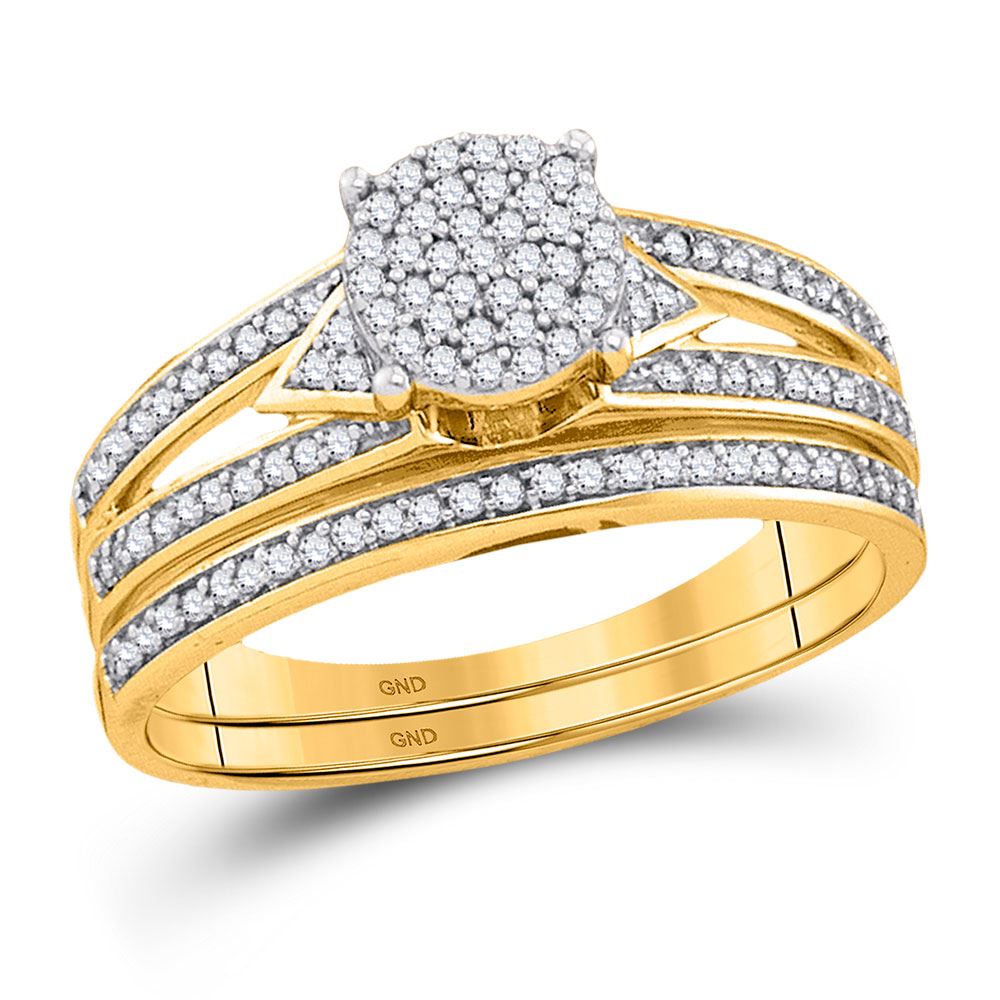 10kt Yellow Gold Womens Round Diamond Cluster Bridal Wedding Engagement Ring Band Set 1/3 Cttw