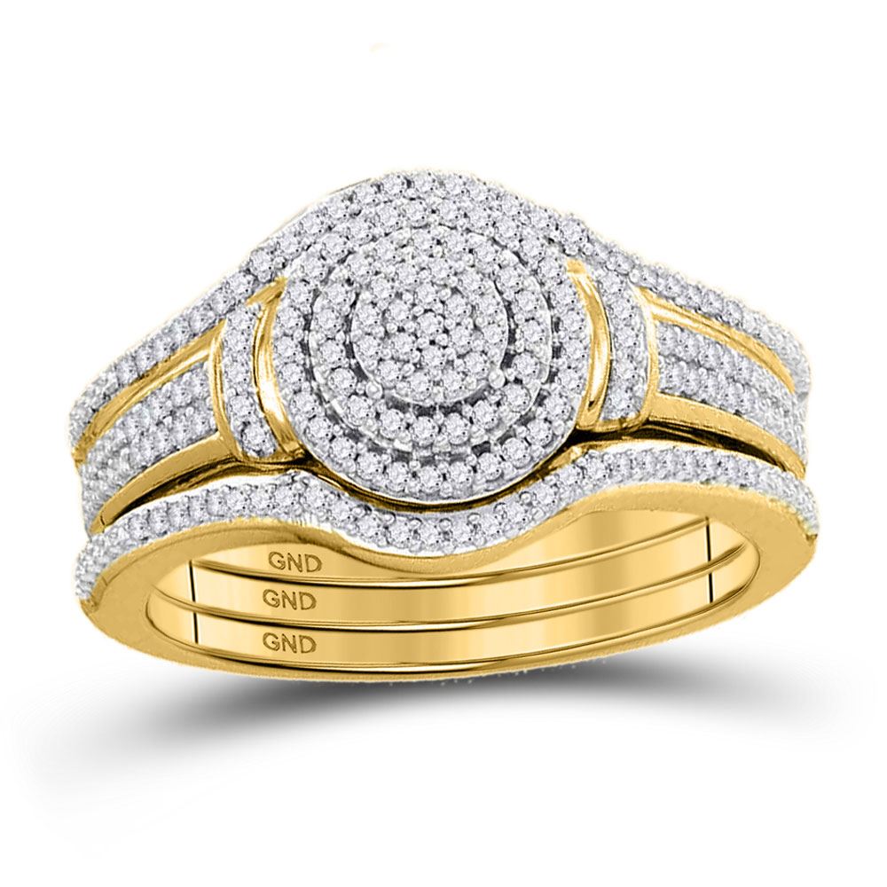 REF-45M5F - 1/3 CTW Round Diamond Cluster Bridal Wedding Ring 10kt Yellow Gold - REF-45M5F