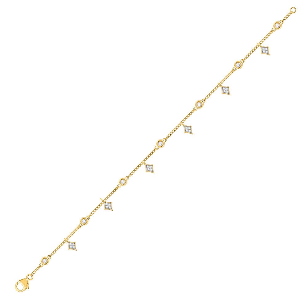 10kt Yellow Gold Womens Round Diamond Dangle Fashion Bracelet 1/3 Cttw