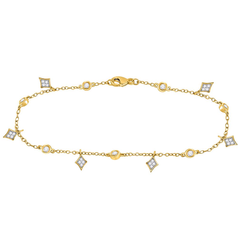 10kt Yellow Gold Womens Round Diamond Dangle Fashion Bracelet 1/3 Cttw