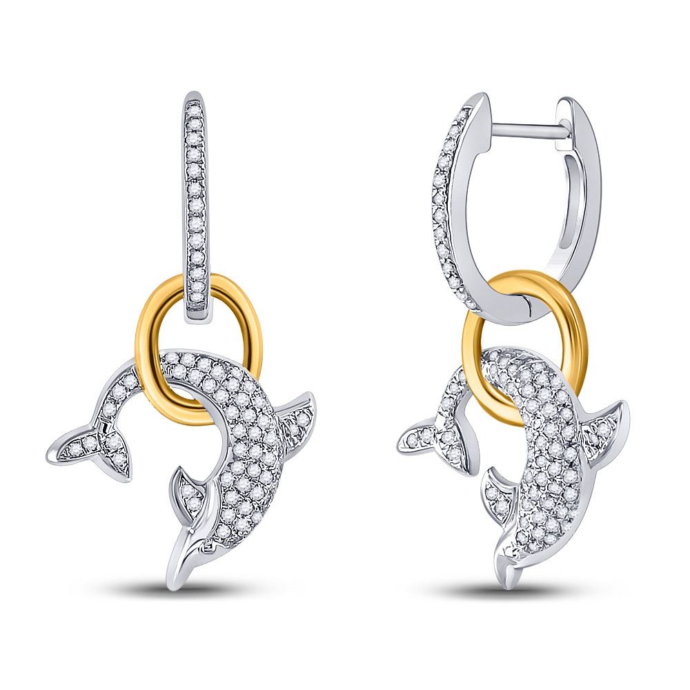 REF-32N3Y ---- 1/3 CTW Round Diamond Dolphin Hoop Dangle Earrings 10kt Two-tone Gold
