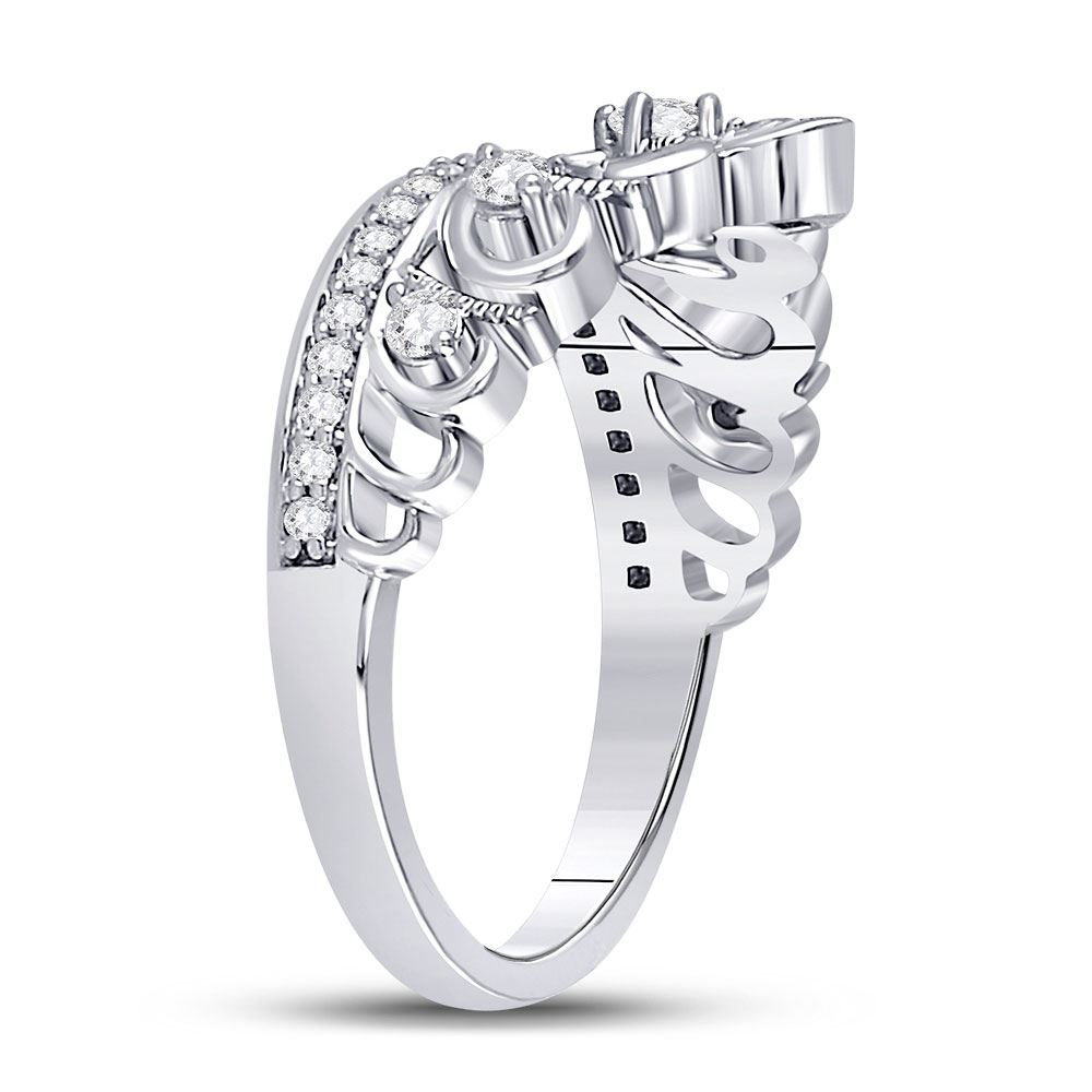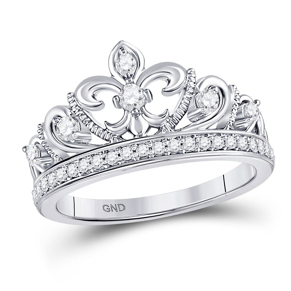 10kt White Gold Womens Round Diamond Fleur-de-lis Crown Ring 1/3 Cttw