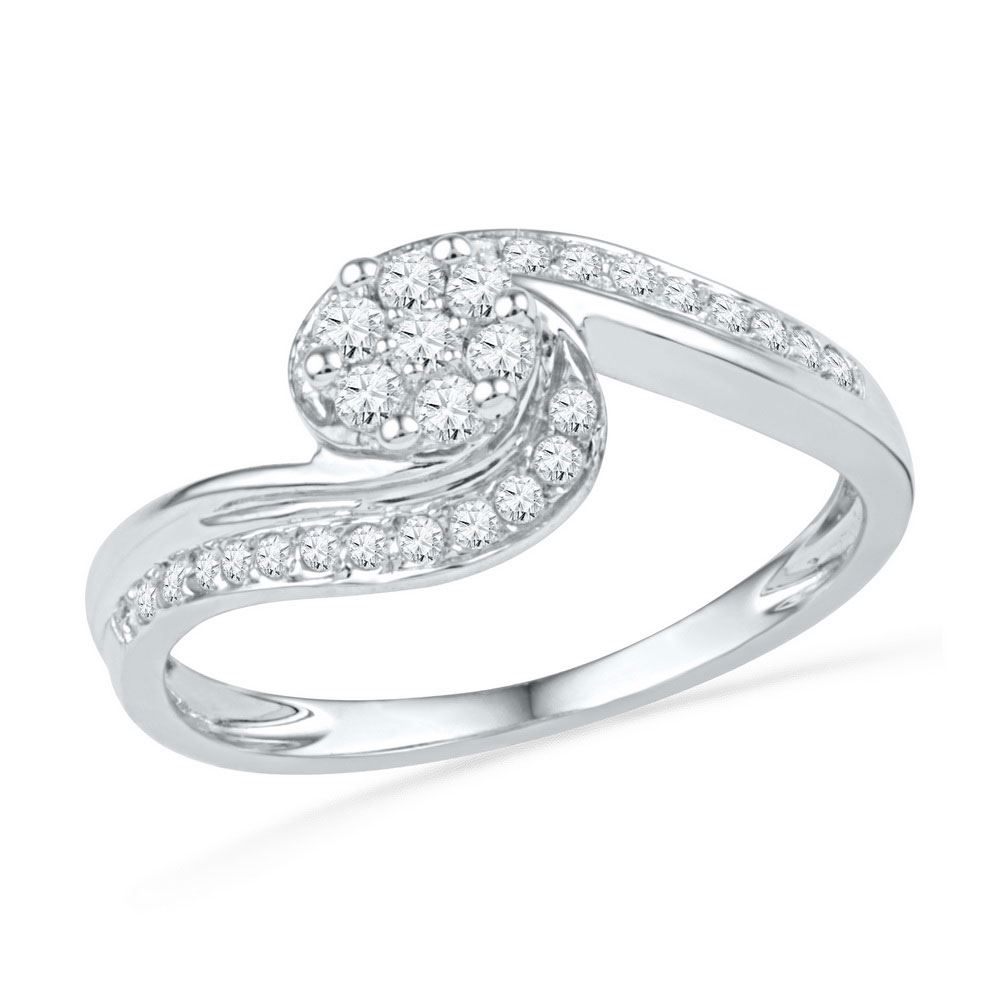 10kt White Gold Womens Round Diamond Flower Cluster Curved Ring 1/3 Cttw