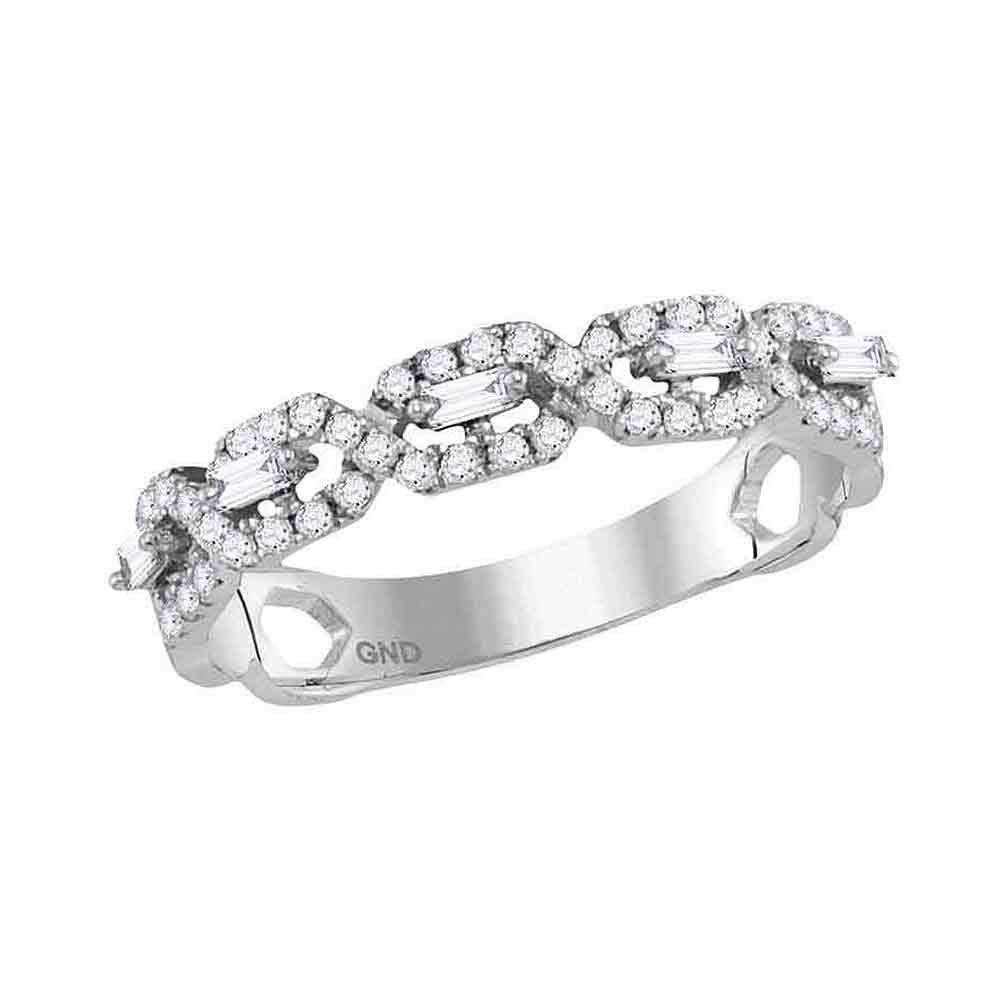 14kt White Gold Womens Round Diamond Modern Twist Stackable Band Ring 1/3 Cttw