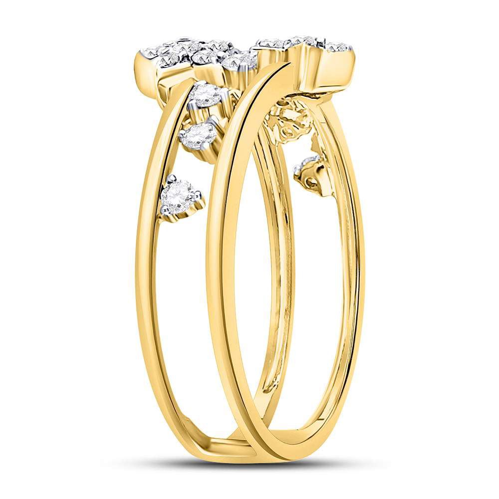 14kt Yellow Gold Womens Round Diamond Open Double Star Band Ring 1/3 Cttw
