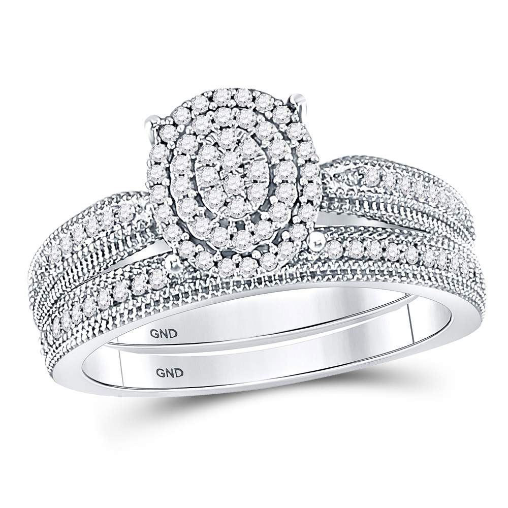 10kt White Gold Womens Round Diamond Oval Bridal Wedding Engagement Ring Band Set 1/3 Cttw