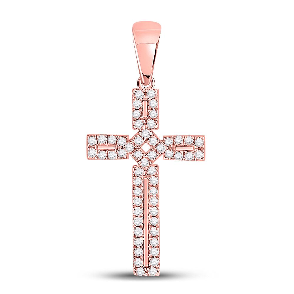 10kt Rose Gold Womens Round Diamond Roman Cross Pendant 1/3 Cttw