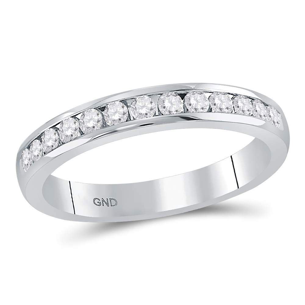 14kt White Gold Womens Round Diamond Single Row Channel-set Wedding Band 1/3 Cttw